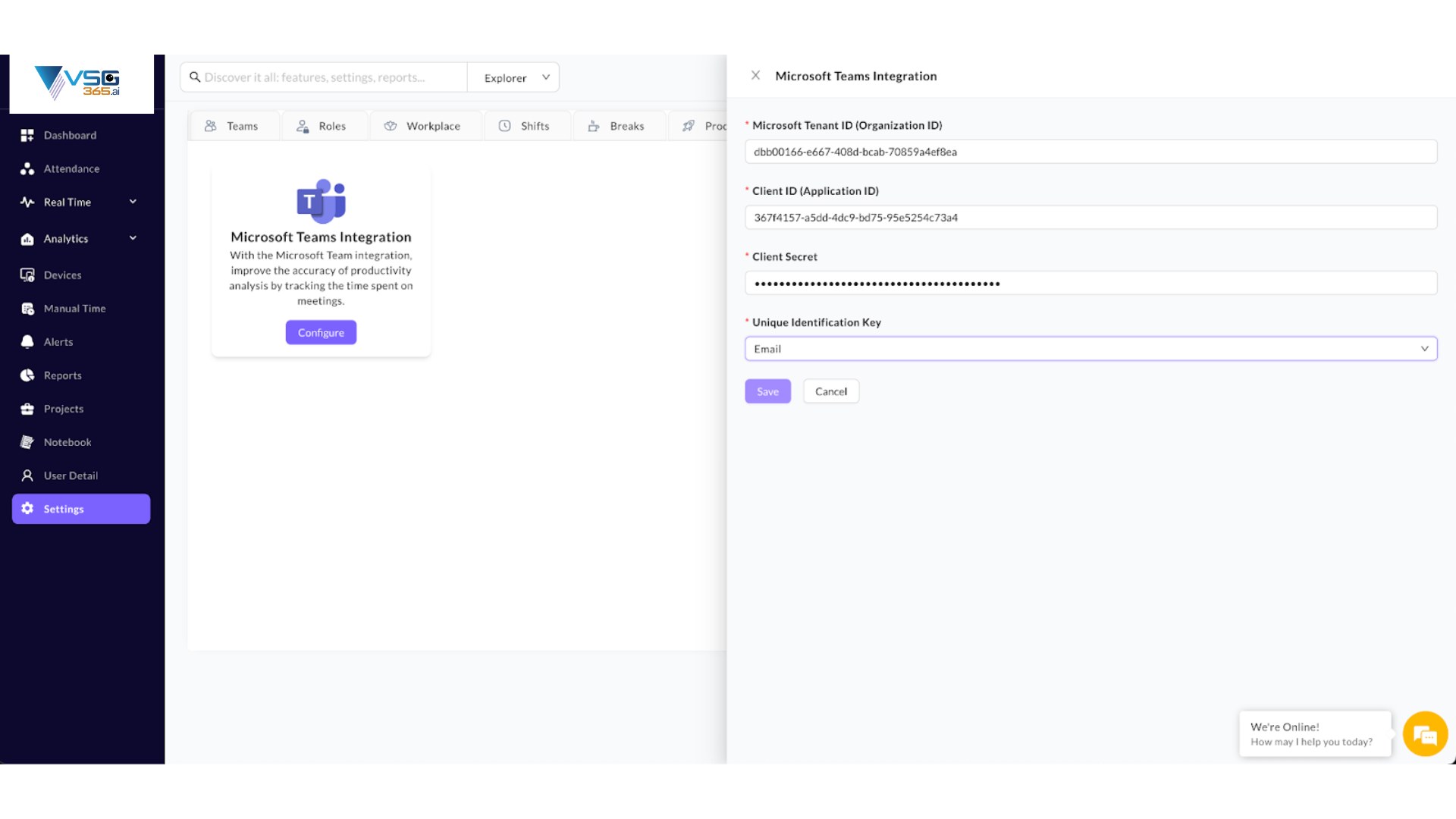 Open your VSG-365.ai portal and go to Settings > Integration > Microsoft Teams Integration > Configure